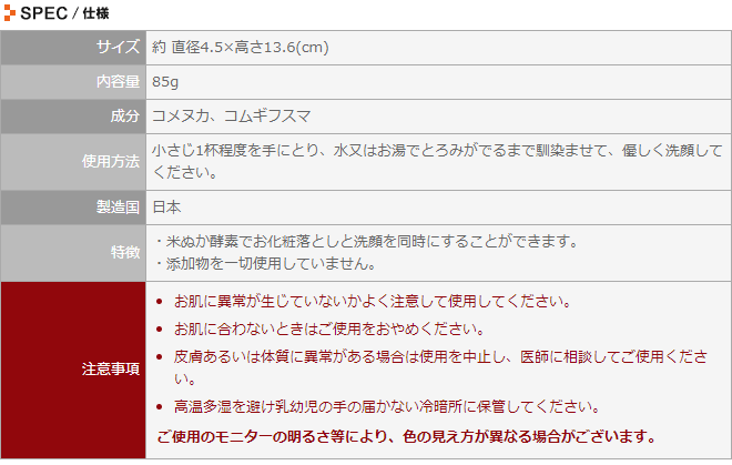 米ぬかと小麦ふすま(小麦ぬか)のみを使用した、添加物を一切使わない洗顔クレンジング。