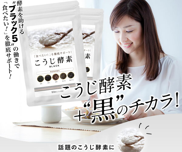 【楽天スーパーSALE★対象商品】こうじ酵素BLACK ブラック 酵素サプリ 酵素サプリメント ダイエットサプリメント 美容 健康 黒米 黒豆 黒松 黒ゴマ 黒かりん ミネラル カルシウム ビタミン 植物繊維 【meru1】